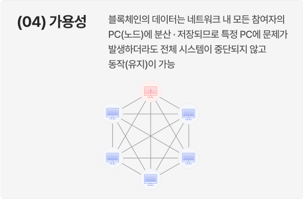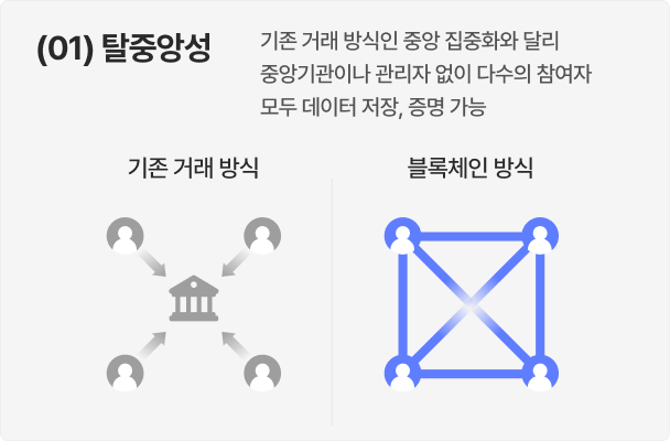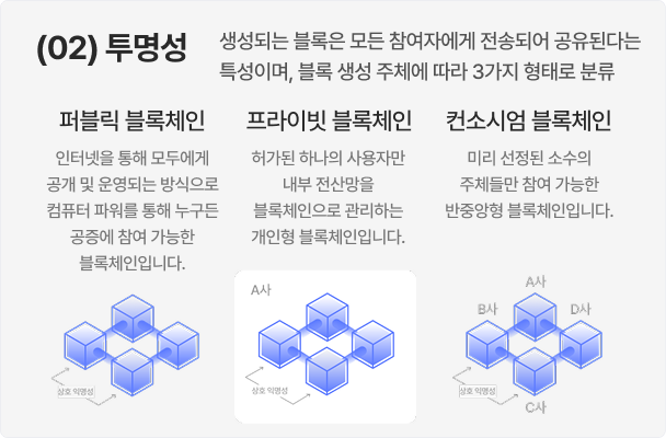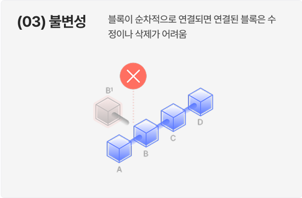 블록체인(Block Chain)이란 데이터가 담긴 블록을 일정 주기로 생성한 뒤 이전 블록에 체인과 같이 연결하는 기술입니다. 블록체인은 변조하기 어려운 형태이며 네트워크에 참여한 다수의 사용자가 정보를 공유할 수 있습니다. 또한, 다수의 사용자는 해당 데이터를 분산·저장할 수 있습니다.